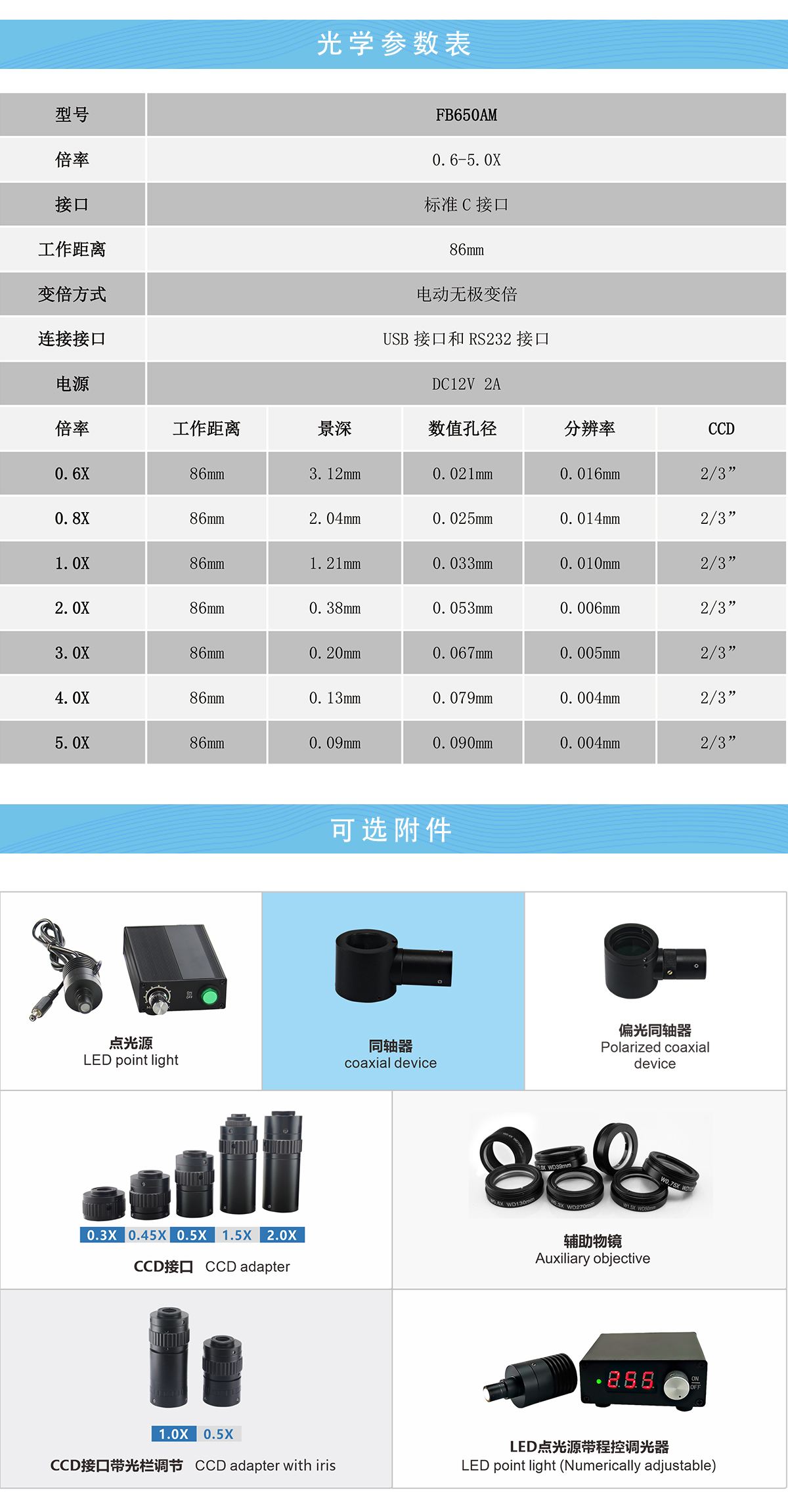 FB650AM 0.6-5.0X 电动变倍镜头