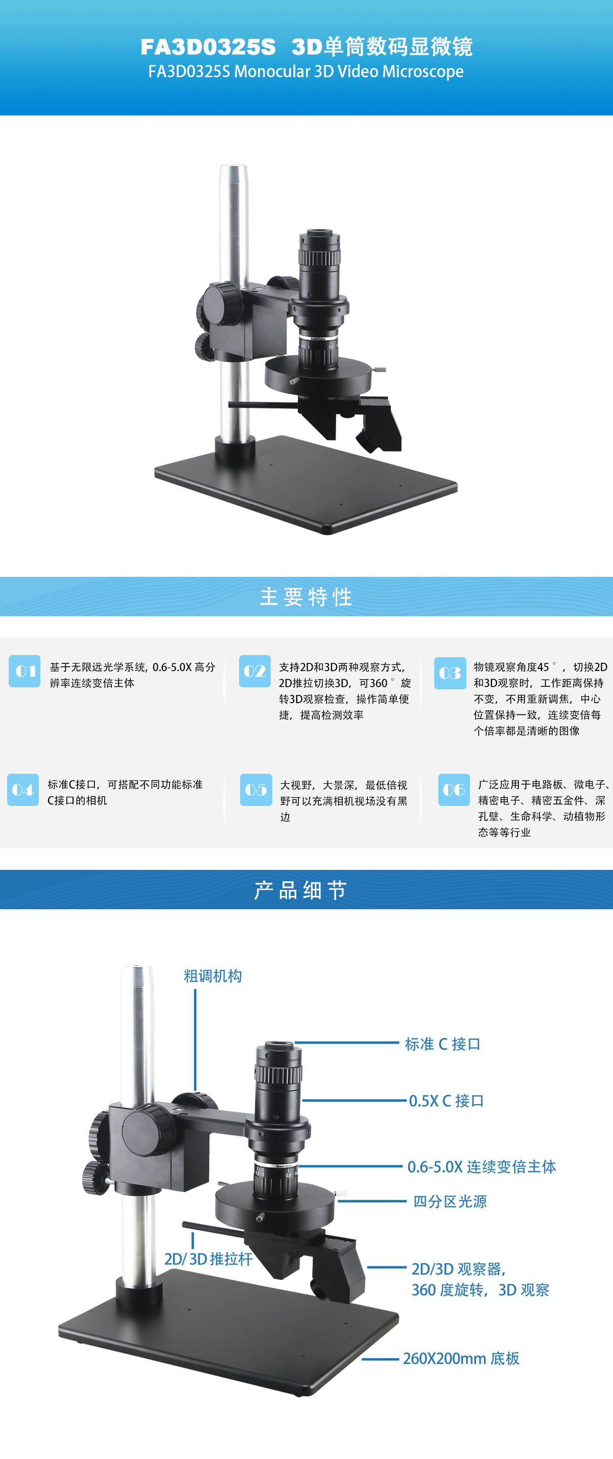 • FA3D0325S 2D/3D单筒视频显微镜(小底板)