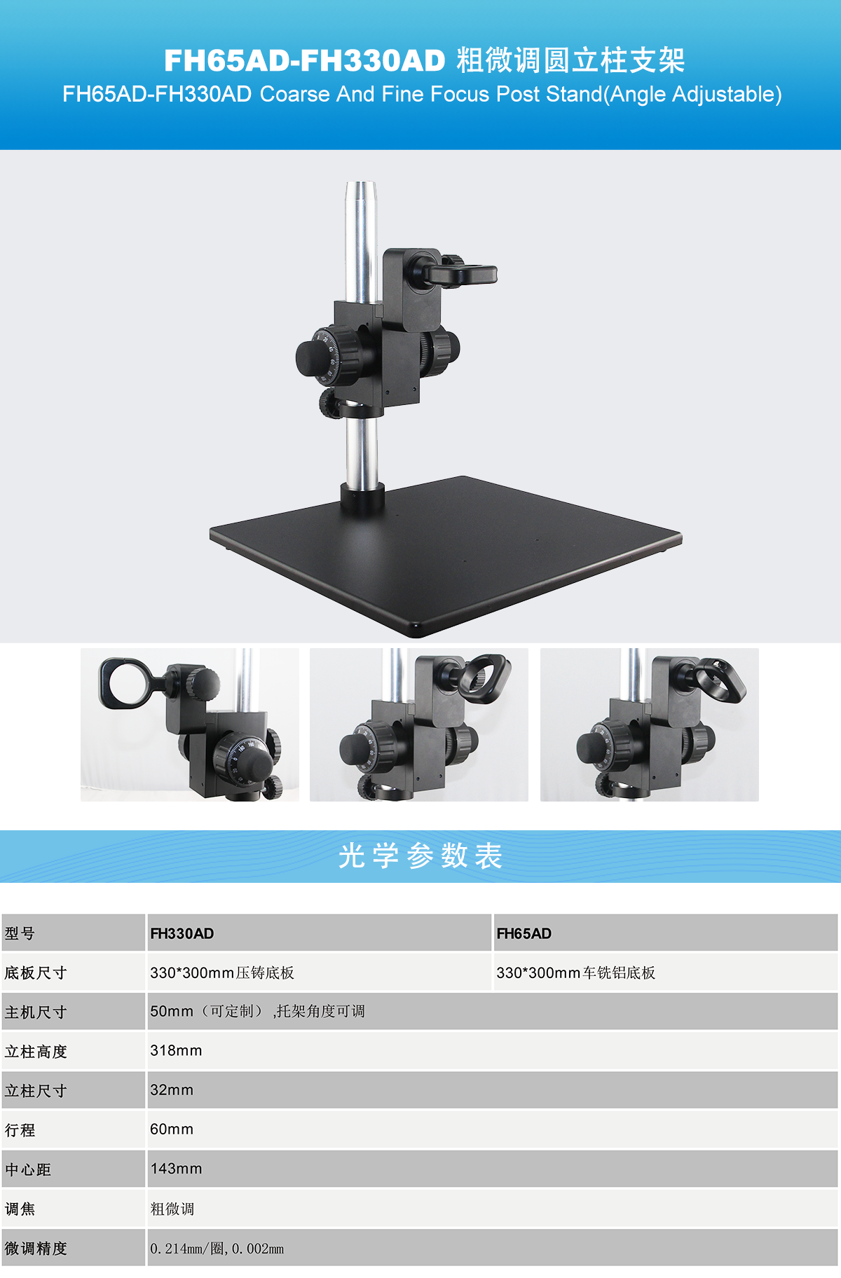 • FH65AD/FH330AD 托架角度可调粗微调圆立柱支架