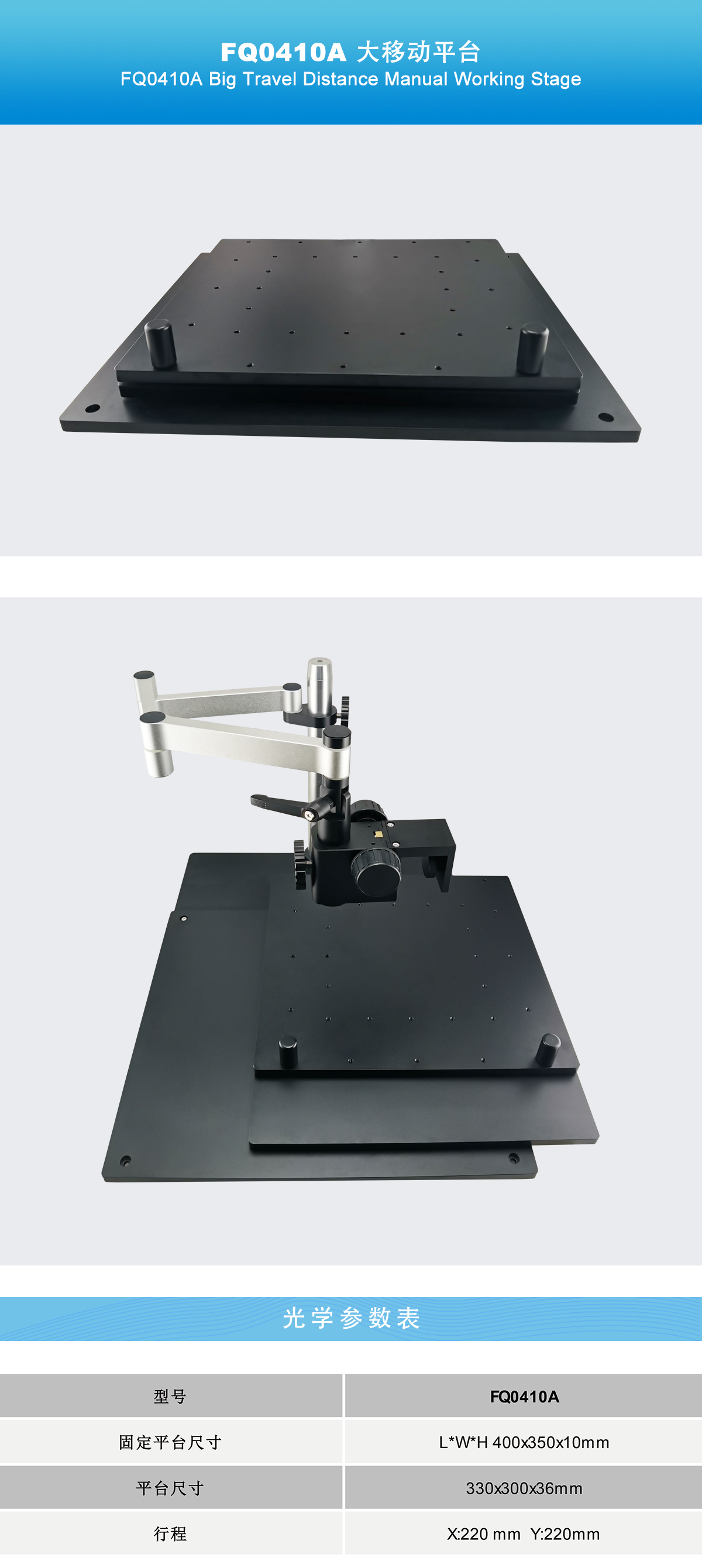 • 固定平台尺寸LXW*H400x350x10mm,平台尺寸330x300x36mm,行程X:220mm Y:220mm