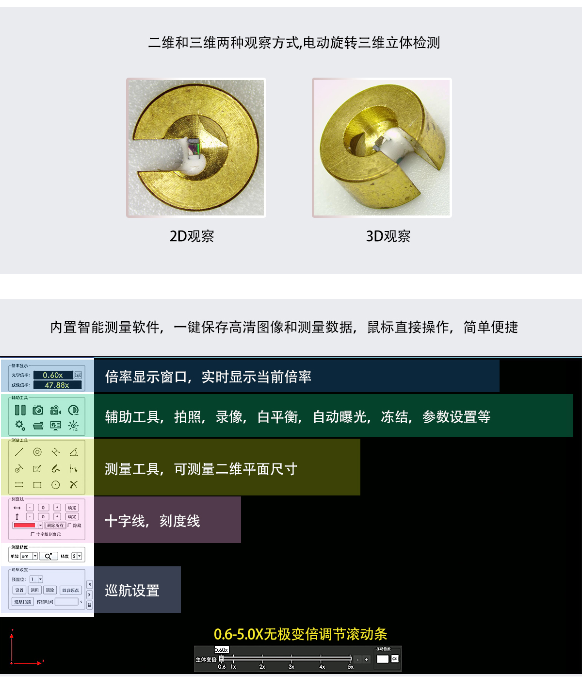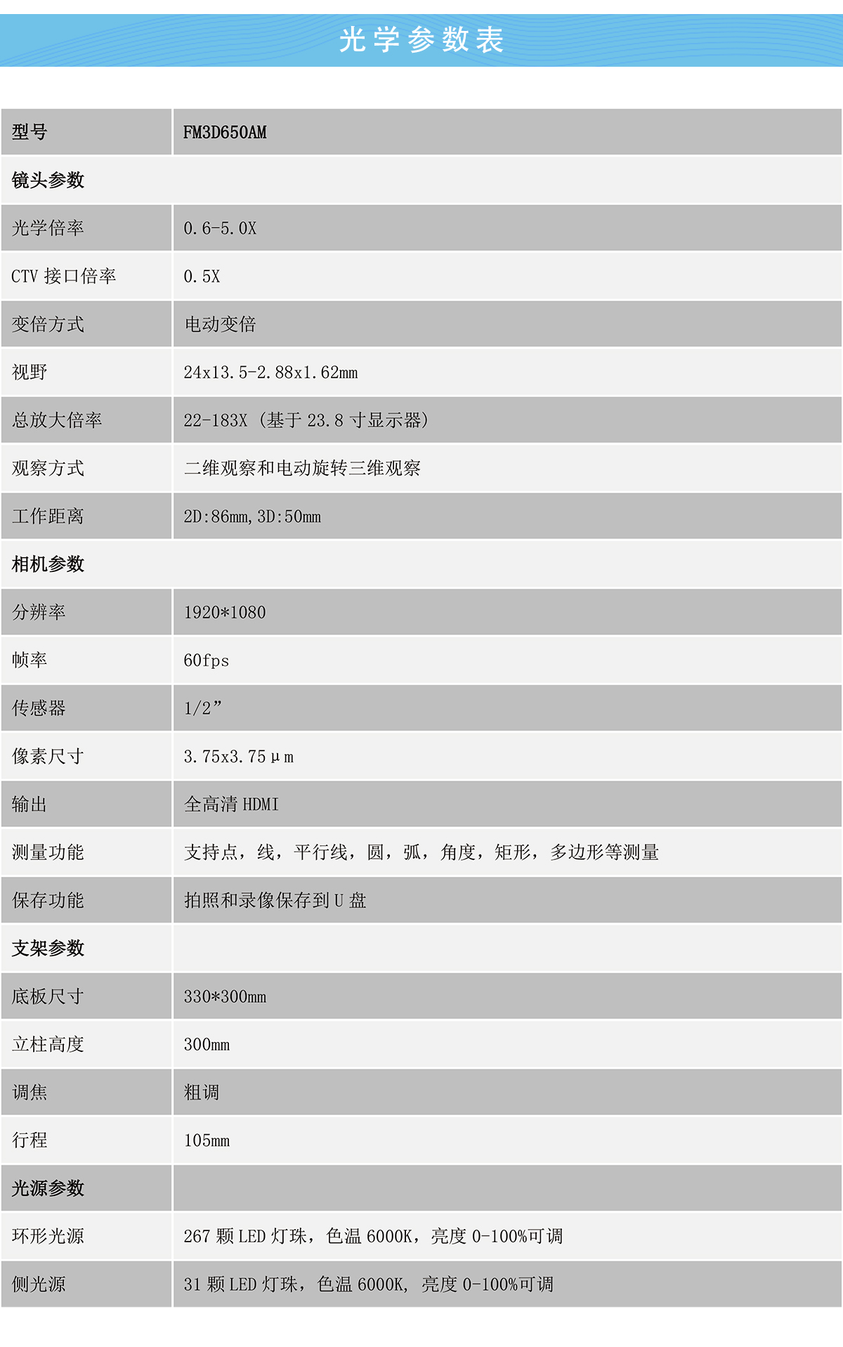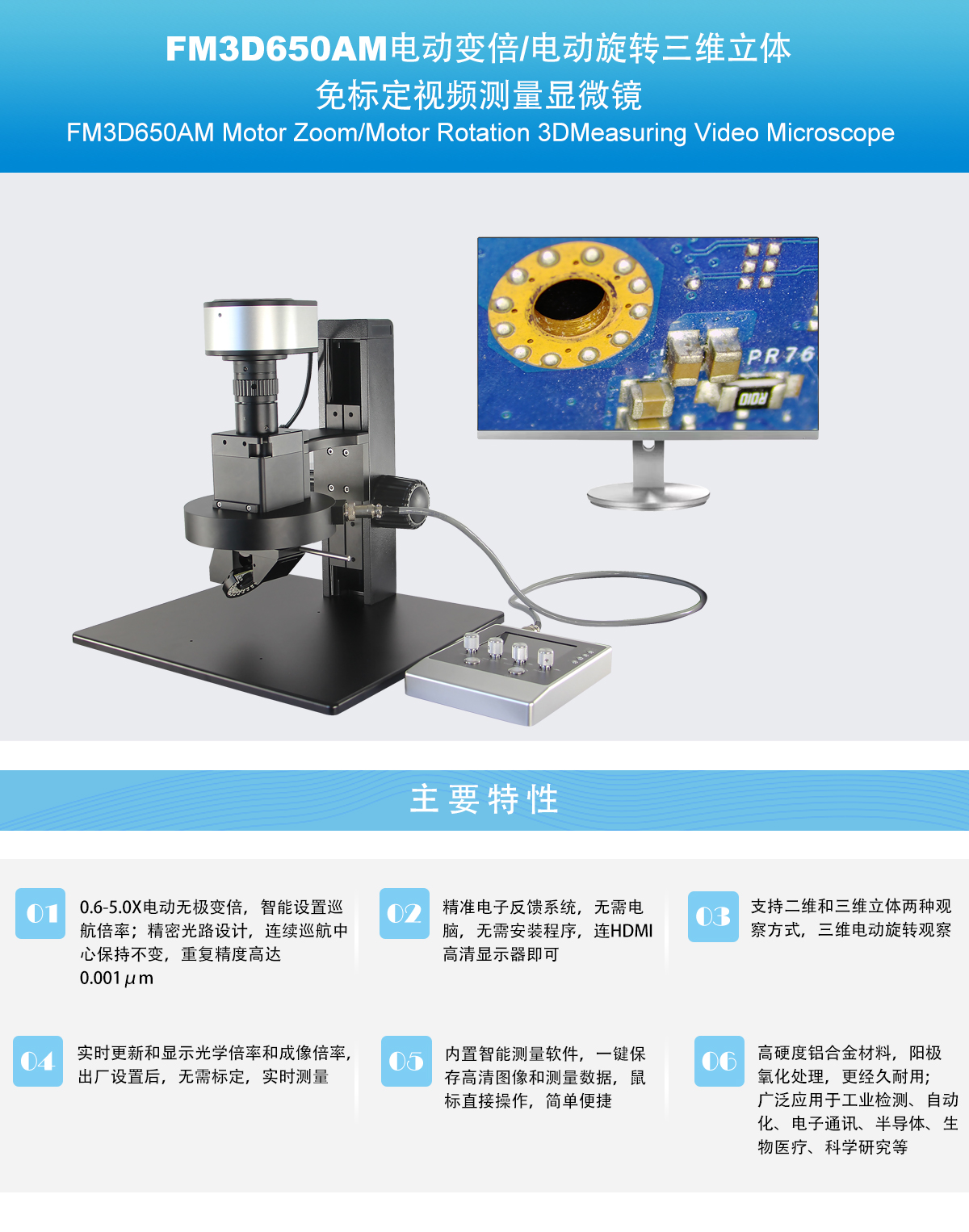 FM3D650AM 电动变倍/电动旋转三维立体 免标定视频测量显微镜