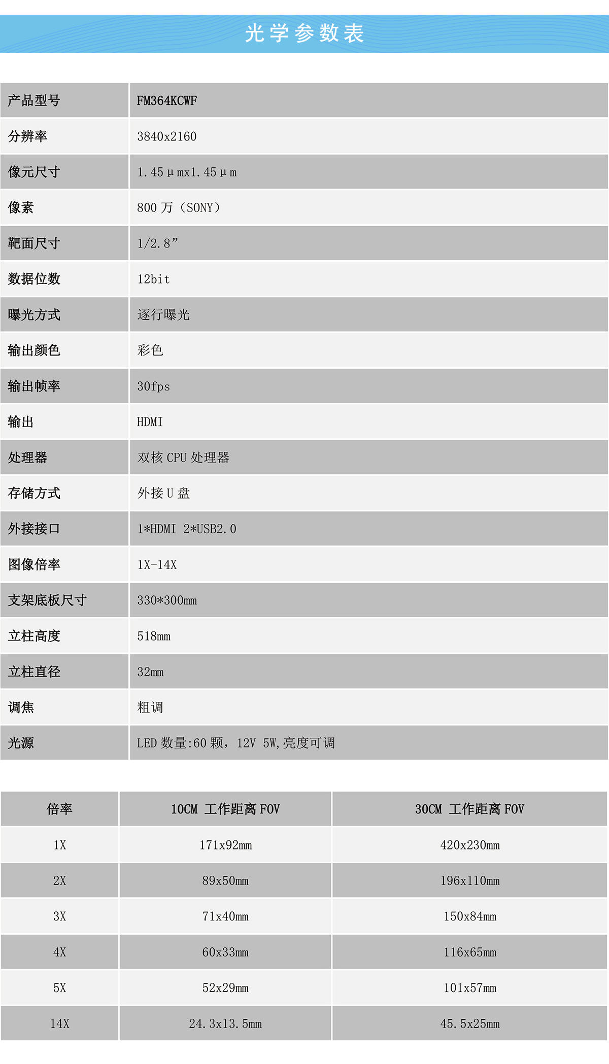 • FM364KCWF 4K大视野自动对焦4K显微镜