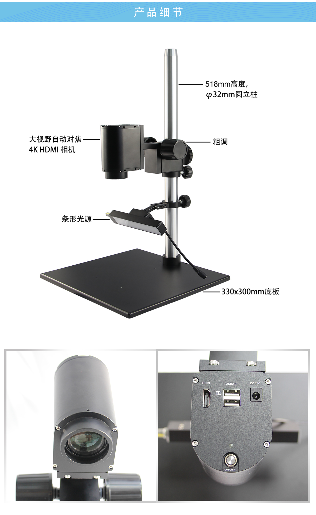 • 睿智4K相机+圆立柱支架延长杆+LL65条形光源 带显示器