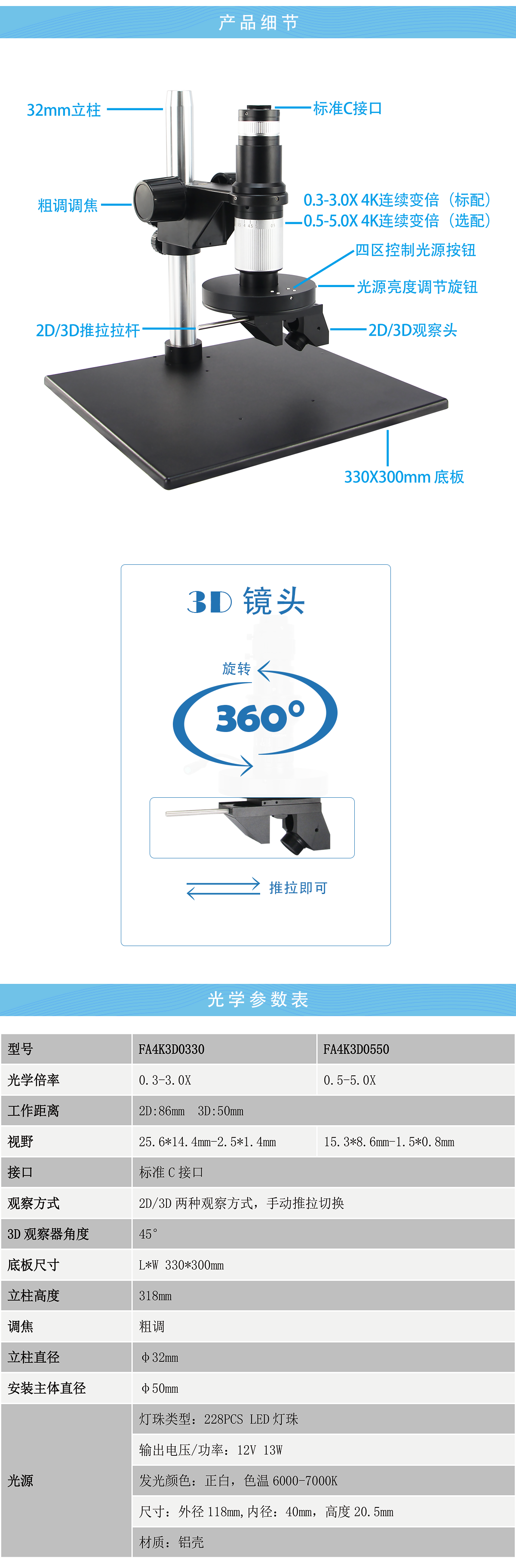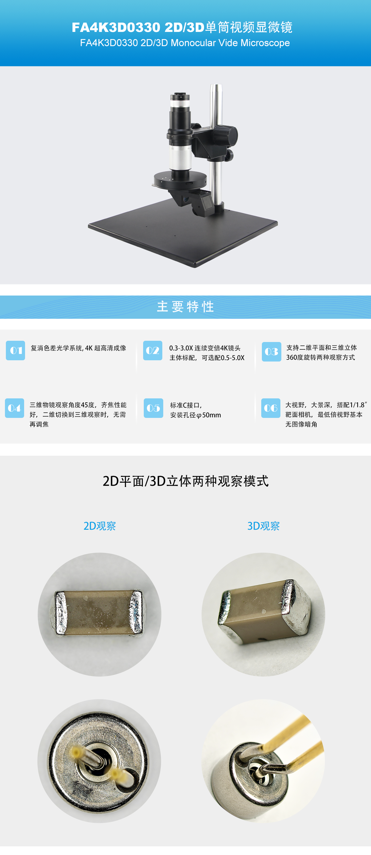 • FA4K3D0330 2D/3D单筒视频显微镜